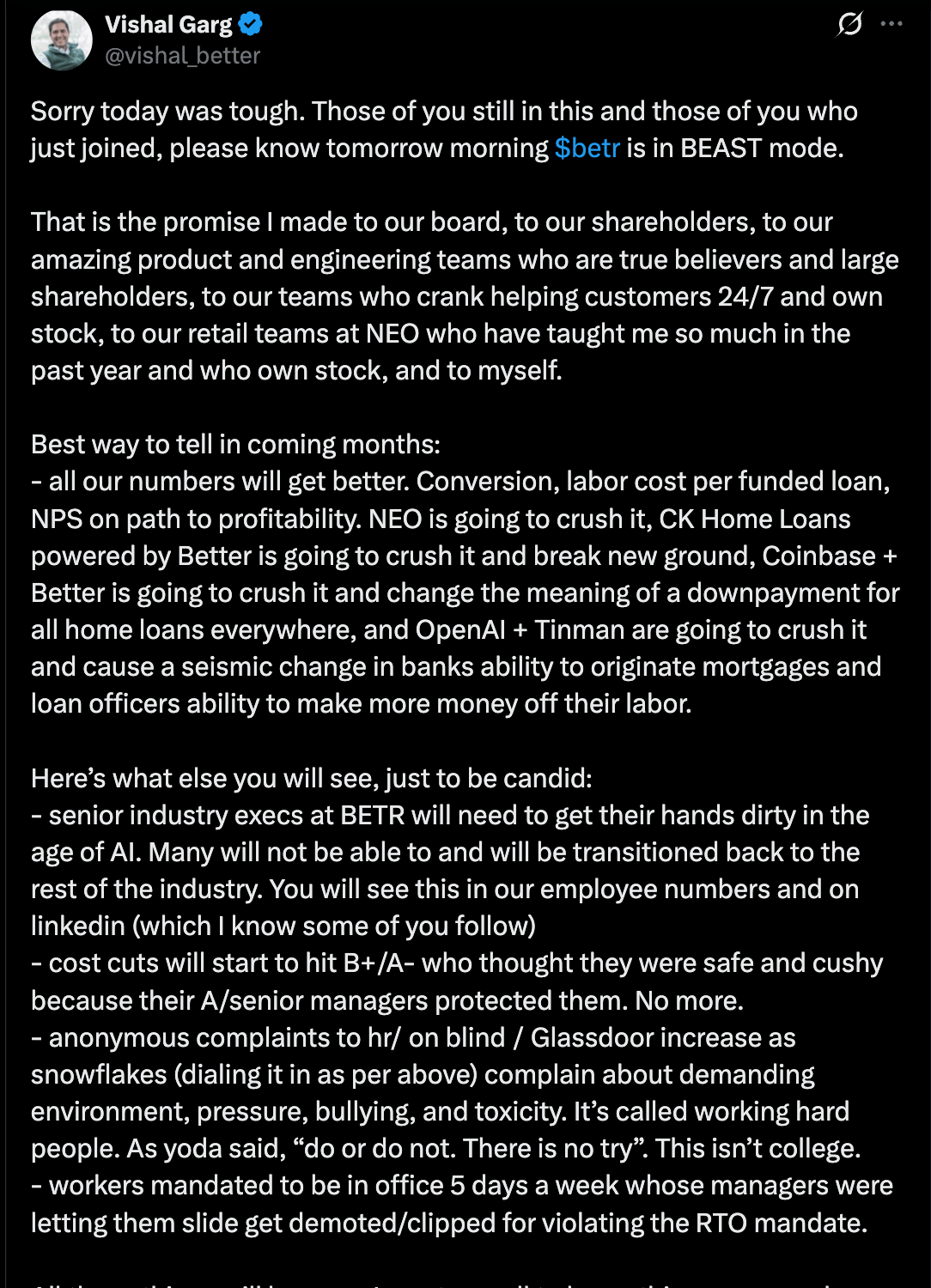 He also appeared to take a shot at publicly traded Figure Technologies, which has a $7.7B market cap (Better’s is roughly $578M).